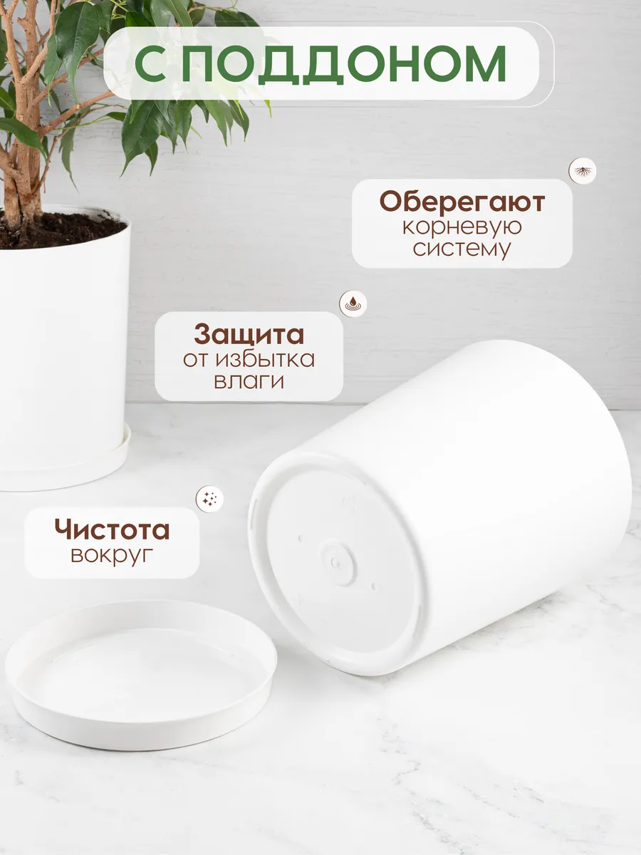 Кашпо с поддоном. Объем-4.5л. Цвет БЕЛЫЙ (цена за 1шт, в упаковке 15 шт)