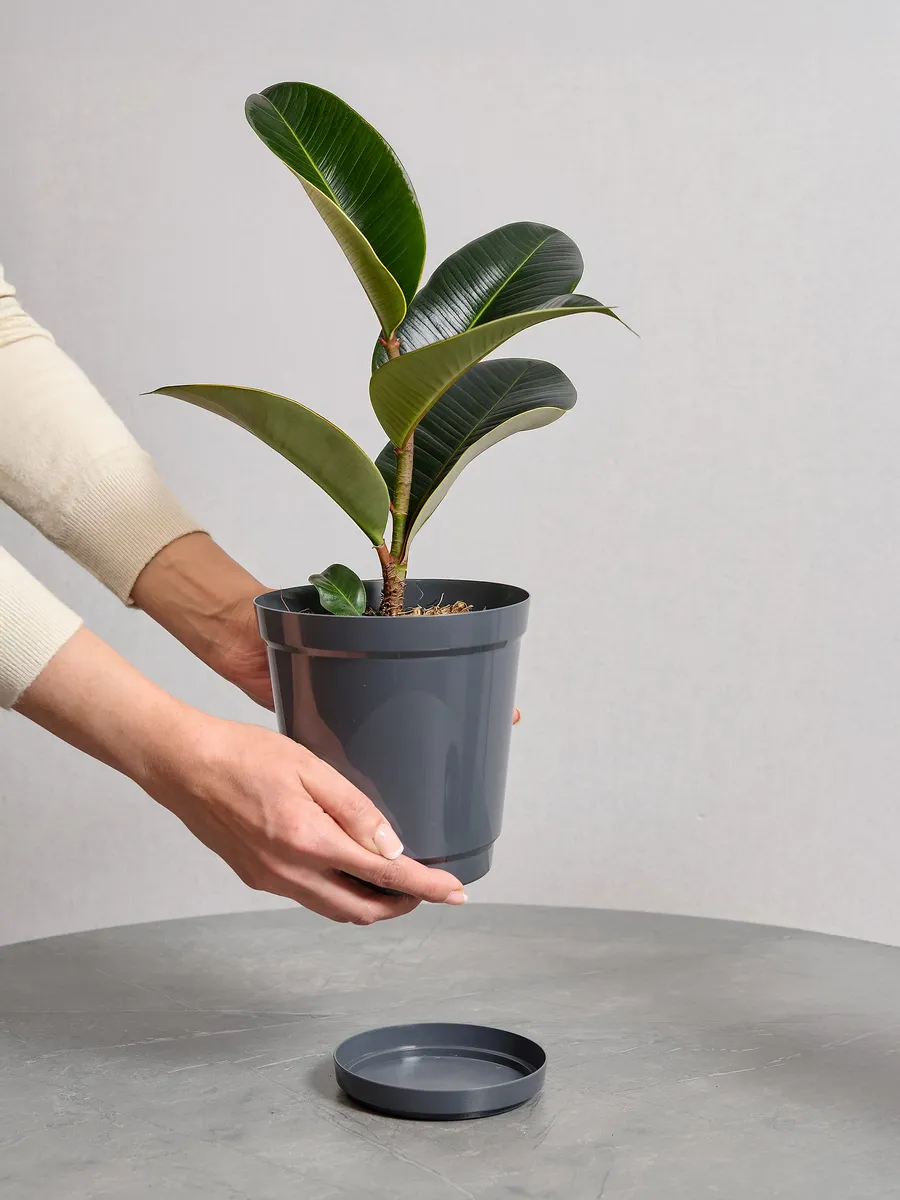 Кашпо с поддоном. Объем-1.5л. Цвет ГРАФИТ (темно серый) (цена за 1шт, в упаковке 30 шт) [код КП-02]